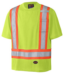 Soft birdseye moisture-wicking polyester. CSA Z96-09 Class 2 Level 2. Combined-performance retroreflective tape.